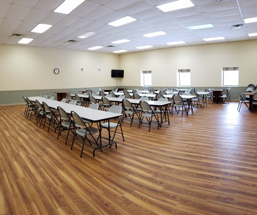 Seating up to 100 people, our conference room includes tables, chairs, and a TV. It also comes equipped with a kitchenette, perfect for preparing food for your event. When you rent our conference room, you can bring your own food as well, so you can indulge in your favorite snacks or party meals in comfort. The conference room is perfect for birthday parties, professional corporate gatherings, family reunions, and more!
